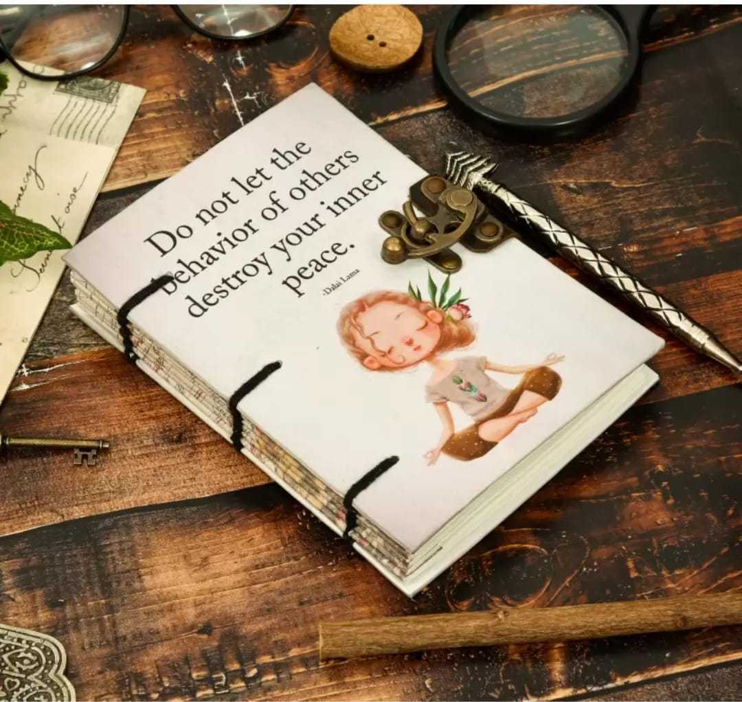 vintage handmade leather journal. Crafted with genuine leather, it radiates authenticity and charm, perfect for those who appreciate classic craftsmanship. The premium antique lock closure adds a touch of elegance and security, ensuring your thoughts and memories are safeguarded within its pages. Inside, you’ll discover 200 brown handmade pages, providing ample space for your musings, sketches, and stories to unfold. Whether it’s for journaling, sketching, or planning, this versatile journal is a timeless companion for your creative endeavors. Treat yourself or a loved one to this exquisite piece, a celebration of tradition and creativity